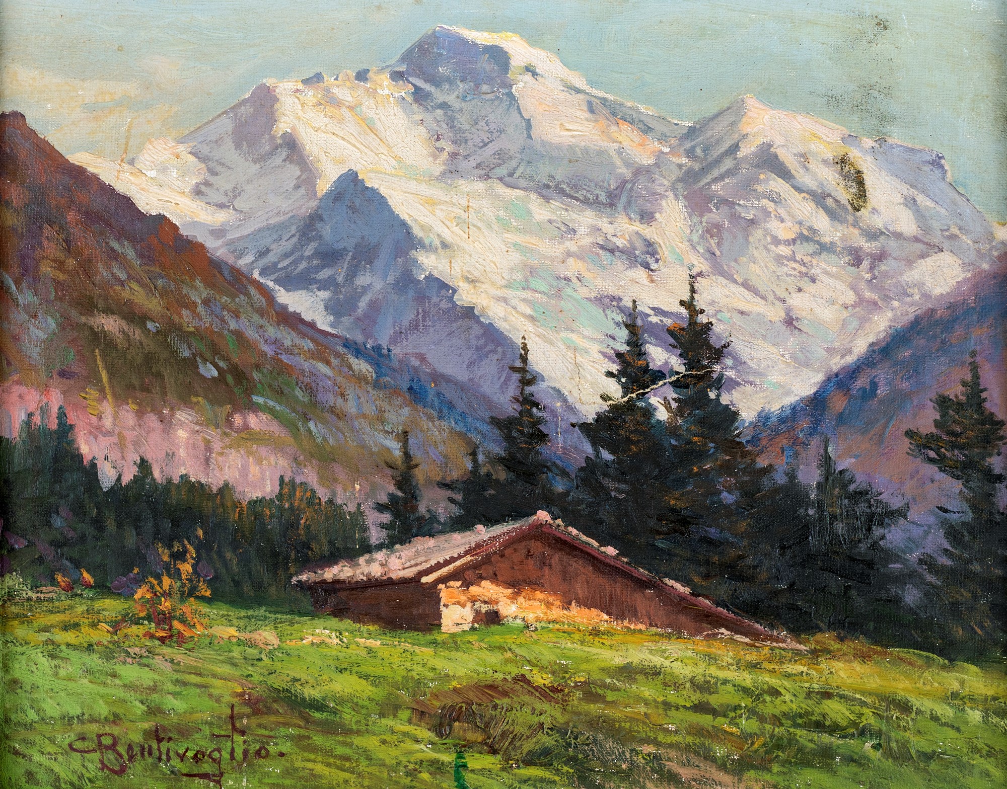 Lot 480 | Cesare Bentivoglio (Genova 1868-Genova 1952) Mountain landscape with cottage