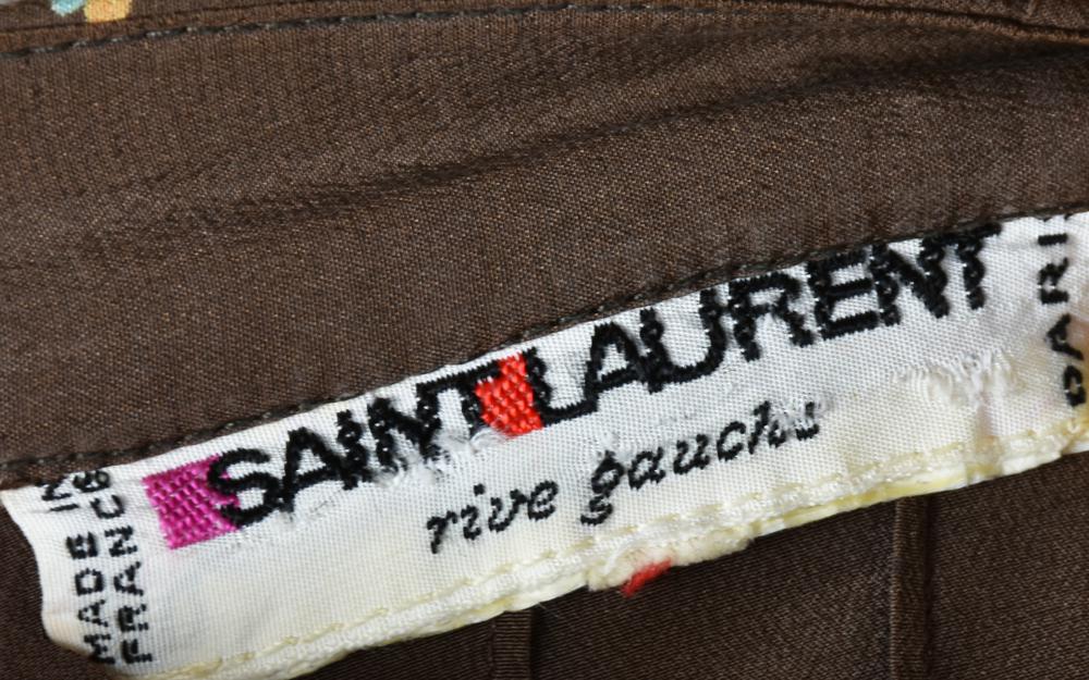 YVES SAINT LAURENT RIVE GAUCHE Camicetta in seta color marrone con piccole...