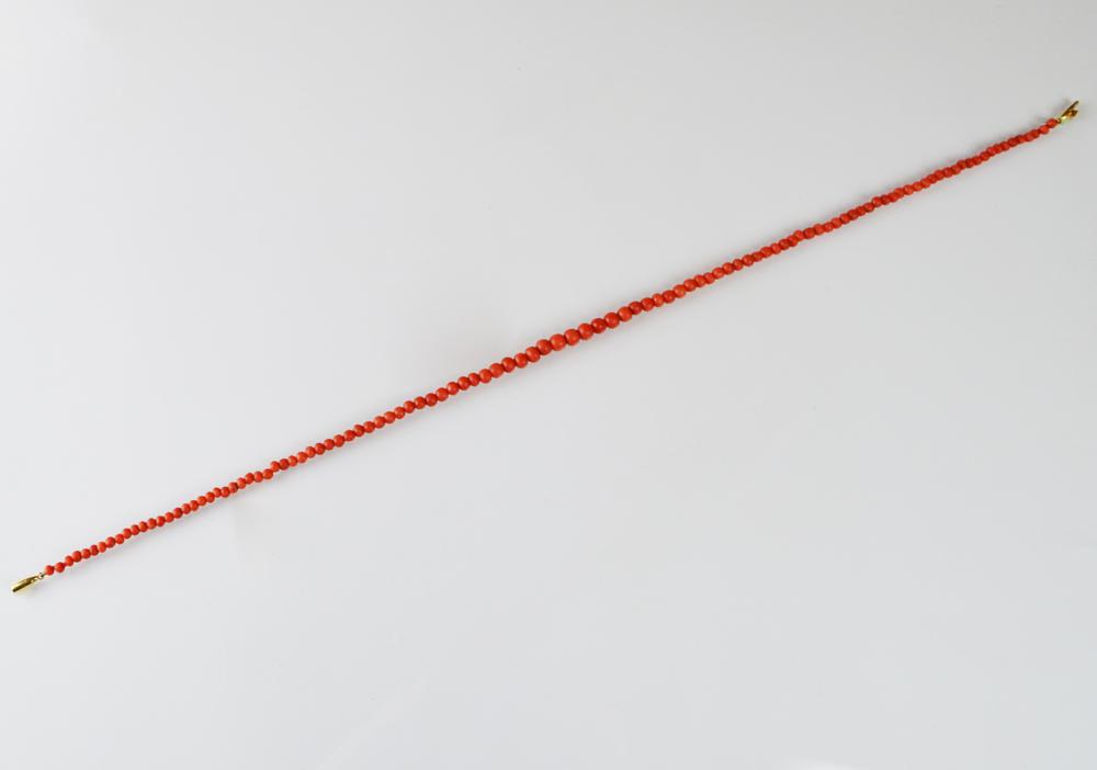 realizzaro ad una fila di coralli rossi di forma sferica degradanti mm 4-6, fermatura in oro giallo, lungh. cm 42, g 13