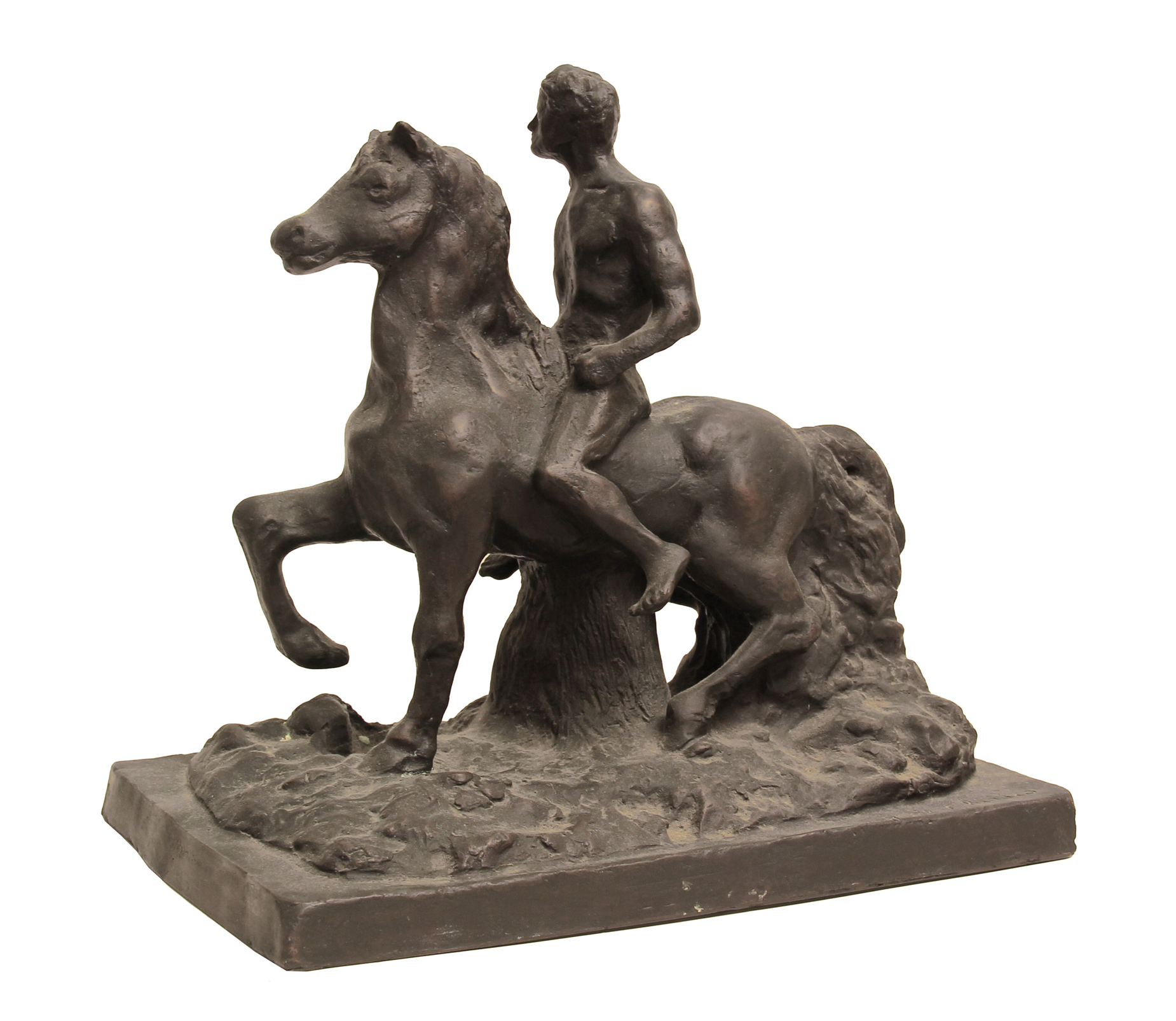 Cavallo e cavaliere 1987 bronzo cm. 27 x 27 x 18