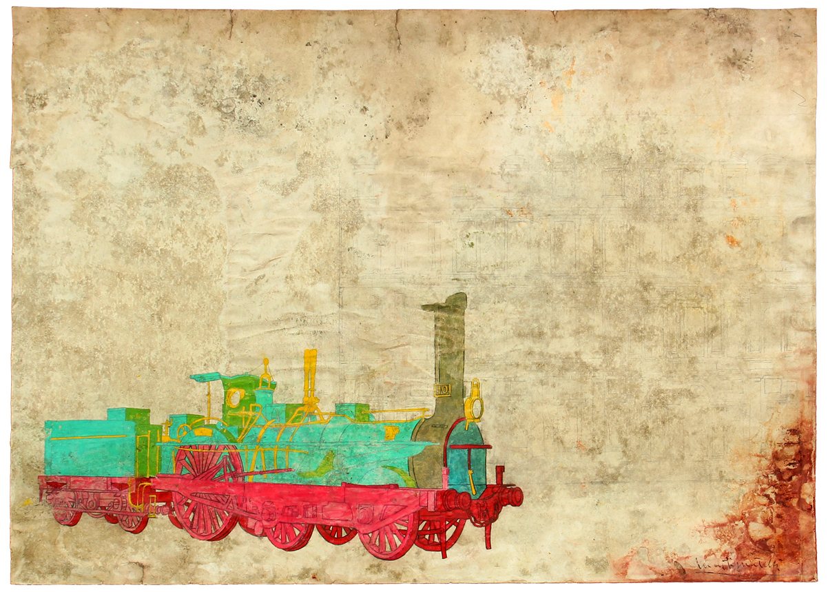 Treno tecnica mista su carta trattata cm. 75 x 105