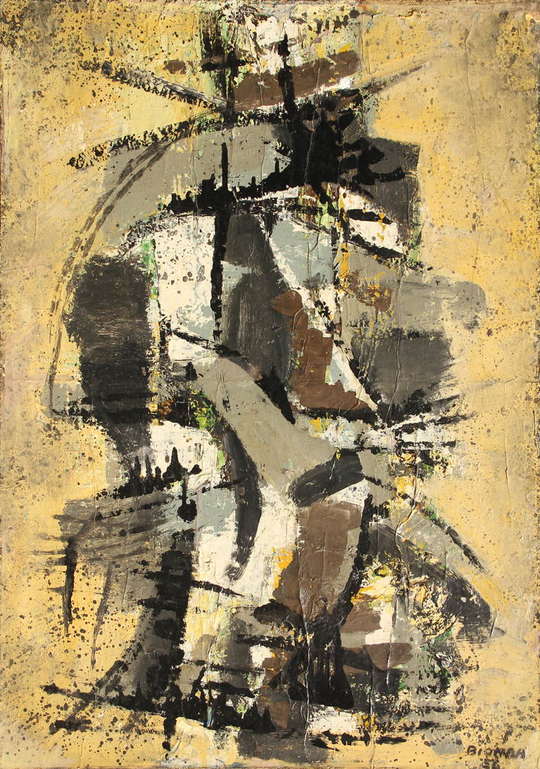 Verticale fondo giallo 1956 olio su tela cm. 70 x 50