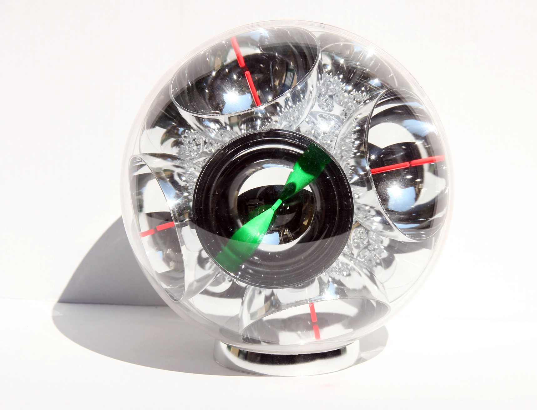 Oggetto cromocinetico OCSVMMV13 anni 90 (1990 - 1999) sfere in metacrilato metallizzato e plexiglass cm. 30 x 30