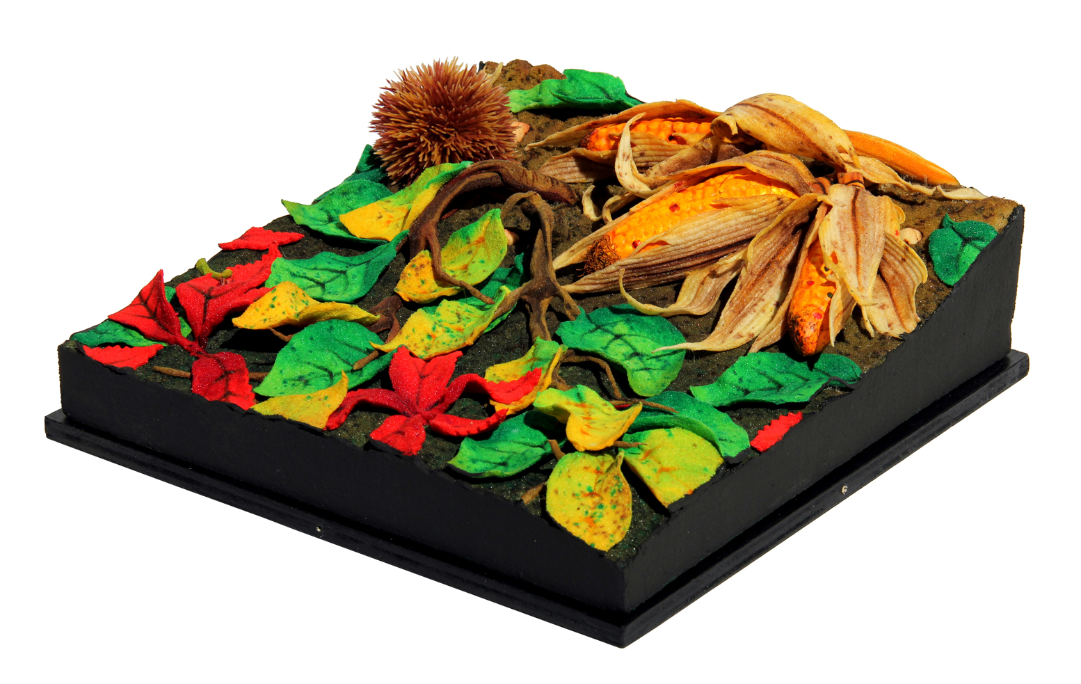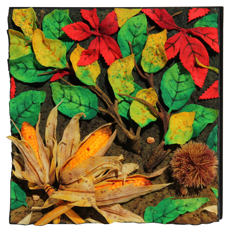Granoturco e riccio poliuretano espanso su tavola cm. 30 x 30