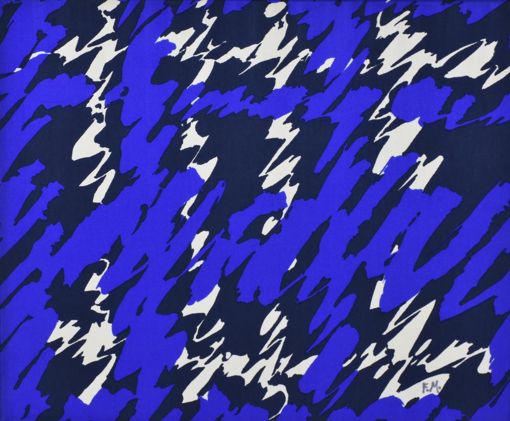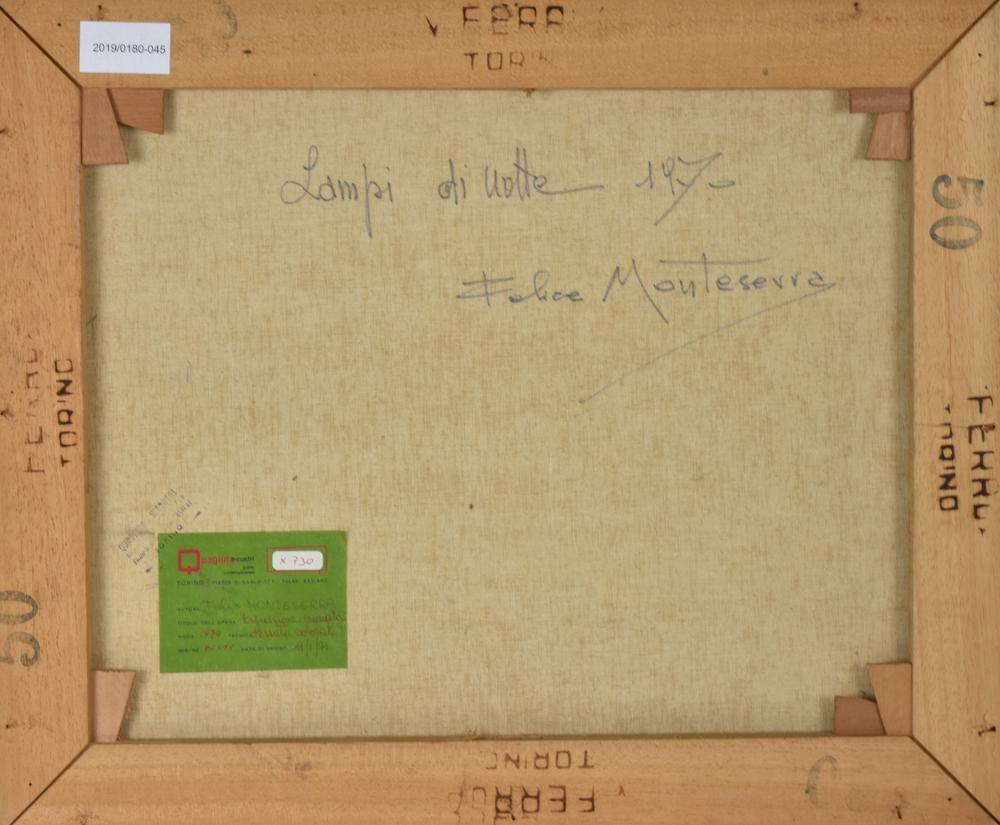 Felix Monteserra LAMPI DI NOTTE tessuto colorato, cm 50x60 sul fronte: sigla...