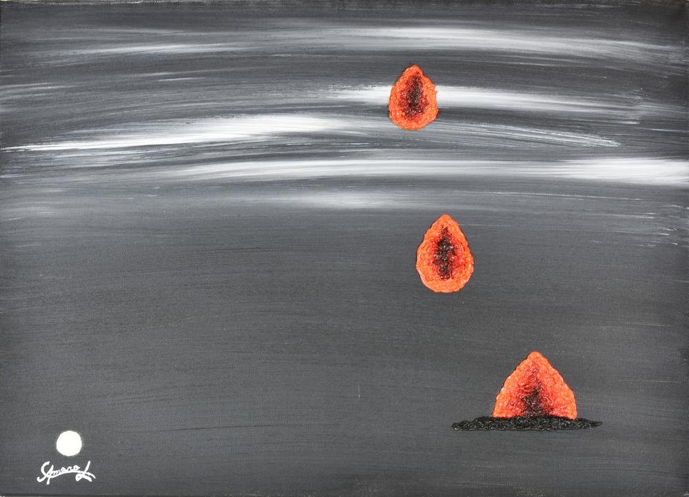 olio e applicazioni ad olio a rilievo su tela, cm 50x70