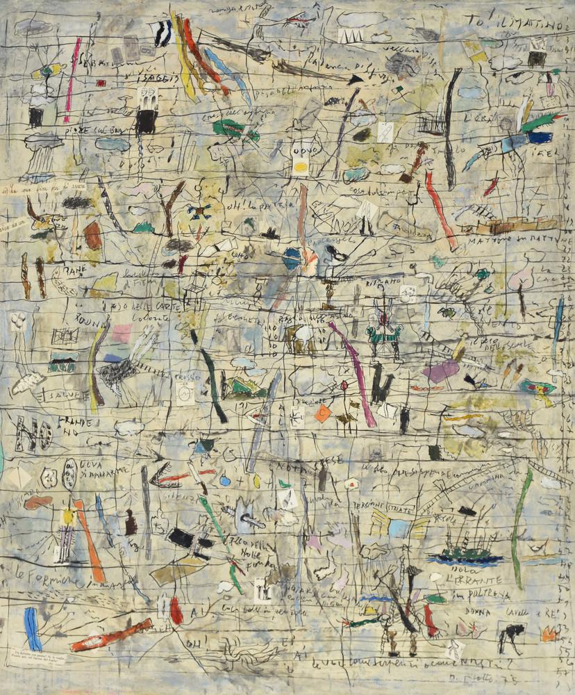 N. Pilotto Senza titolo tecnica mista e collage su tela, cm 70x60 sul fronte:...