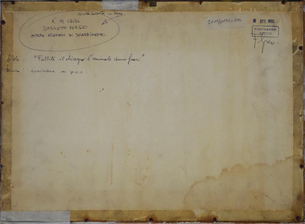 Lot 428 | Ferdinando Greco FALLITO IL DISEGNO L'ANIMALE VENNE FUORI incisione su pvc,...