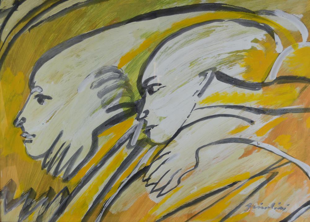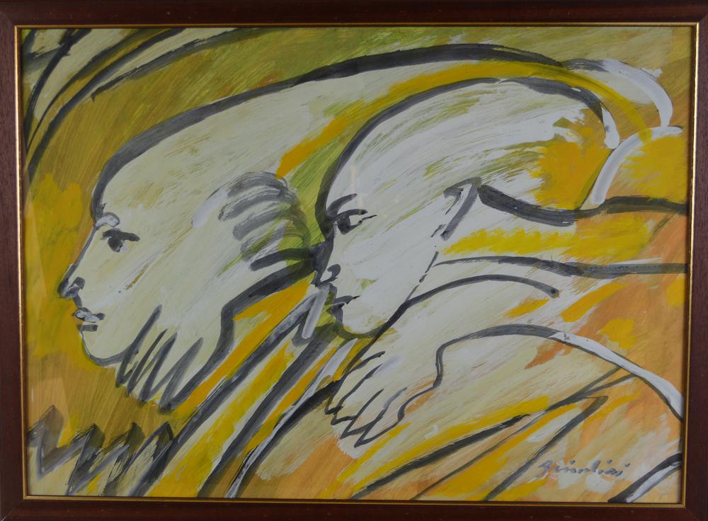 Remo Brindisi VOLTI tempera su carta, cm 50x70 firmato sul retro: firmato...