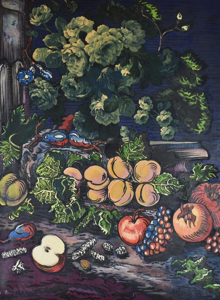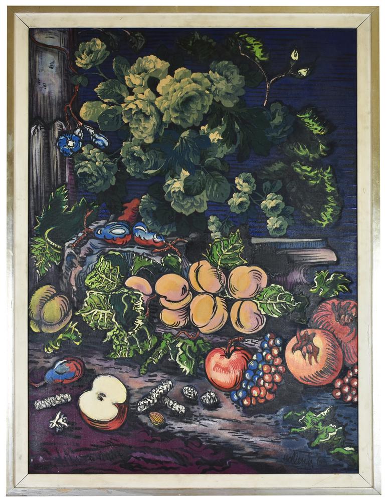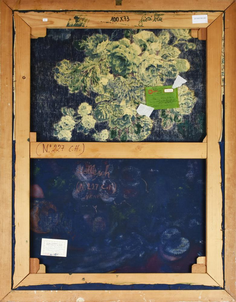 Carlo Hollesch FIORI BLU, STAMPATI CON PESCHE, MELOGRANE, BISCOTTI tecnica...
