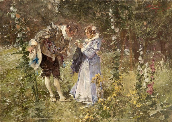 Riccardo Pellegrini "Convenevoli" 1914 olio su cartone (cm 16,5x24) Firmato in a
