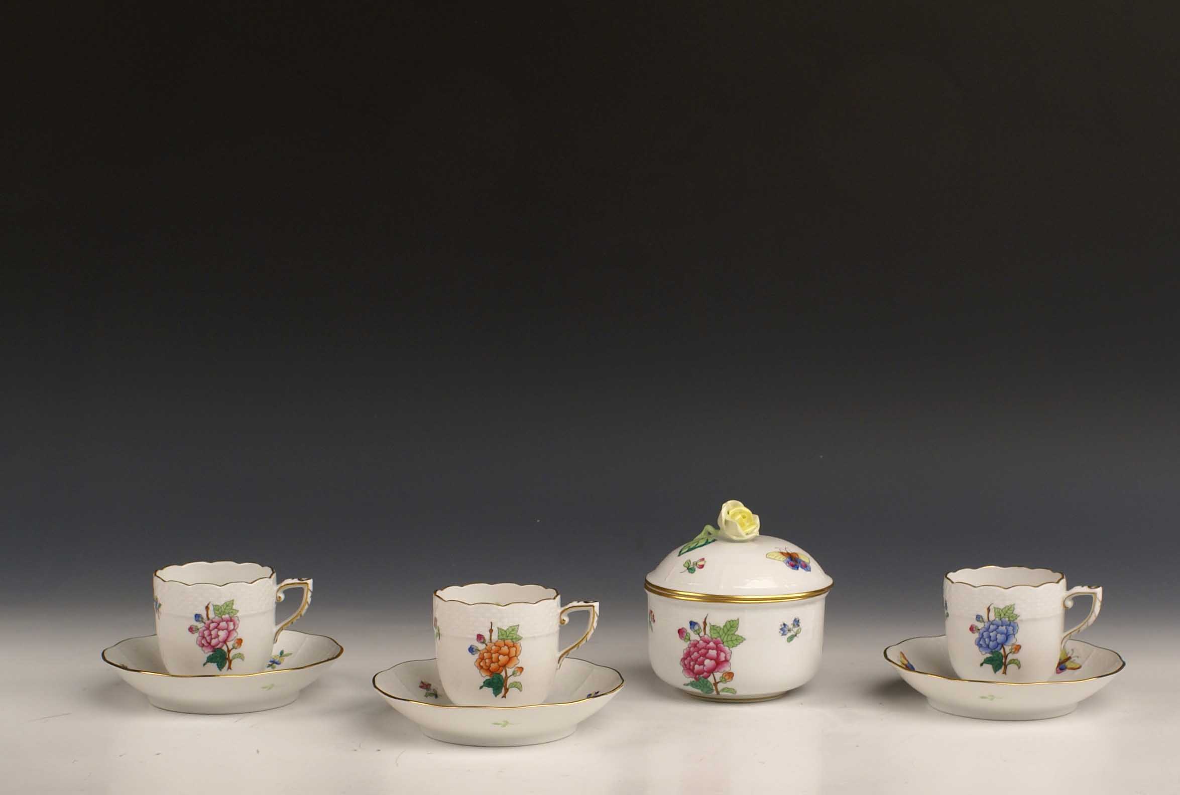 SERVIZIO DA CAFFè Herend In porcellana su fondo bianco dipinta in policromia, composto da sei tazzine con relativi piattini e una zuccheriera