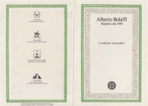 Cert. A. Bolaffi. Firma G. Bolaffi
