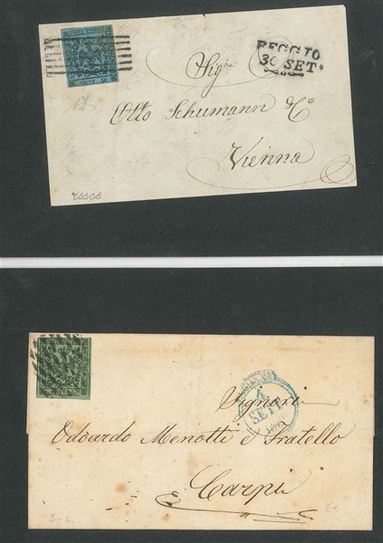ANTICHI STATI: MODENA 1852/1857 Insieme di 3 lettere e un frontespizio. Un cert