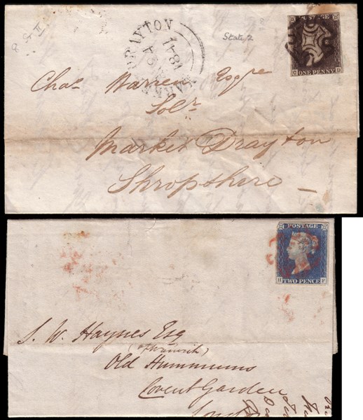 GRAN BRETAGNA 1840/1841 Lotto formato da un "Penny black" e un "Penny blue" sia