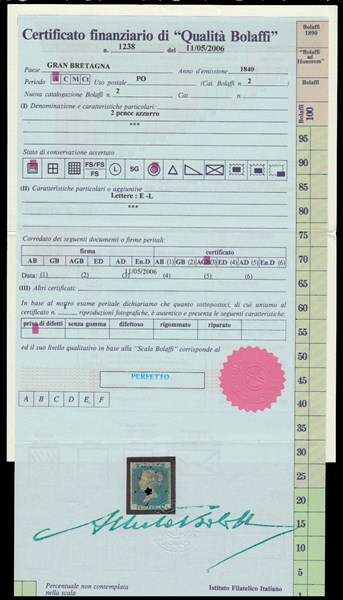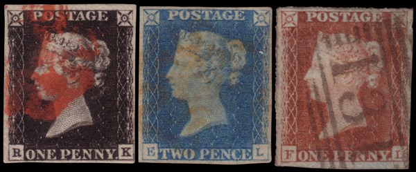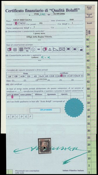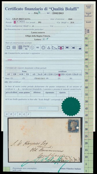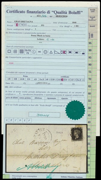 Lotto formato da un "Penny black" e un "Penny blue" sia su busta che usati sciolti e un "Penny red" usato. Alcuni certificati Bolaffi. Qualità mista. Da esaminare