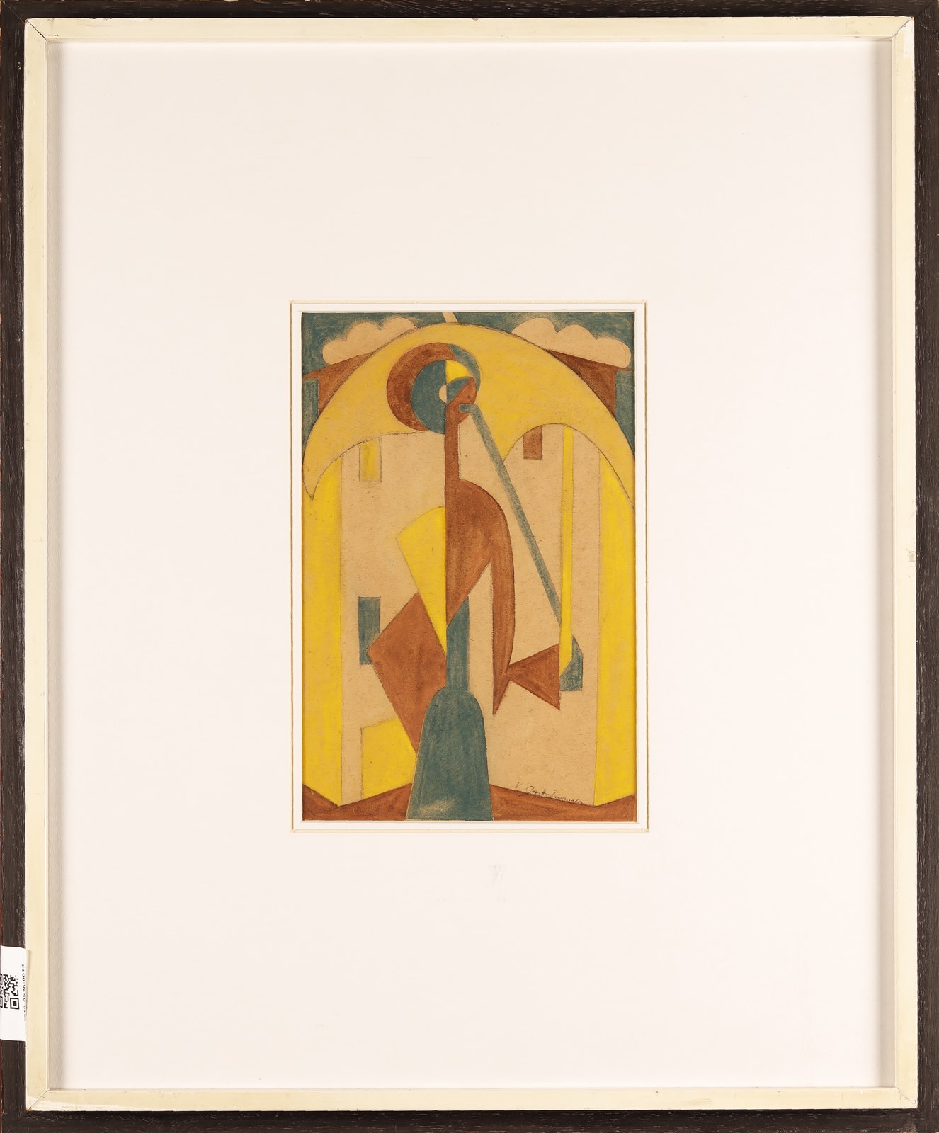 GONCHAROVA NATALIA (1881 - 1962) Figura astratta. 1916. gouache e matita su carta. Cm 19,00 x 30,00. Firma in basso a destra. Pubblicazione: Catalogo ragionato per l'opera di Natalija Goncharova a cura di Denise Bazetoux, pag. 302, n. 704. Esposizioni: Natalija Goncharova - Michail Larionov, Galleria Lucie Weill & Seligmann, Parigi, 2011. Raggisti Russi, Palazzo Tagliaferro, Andora 2015.. Cornice presente