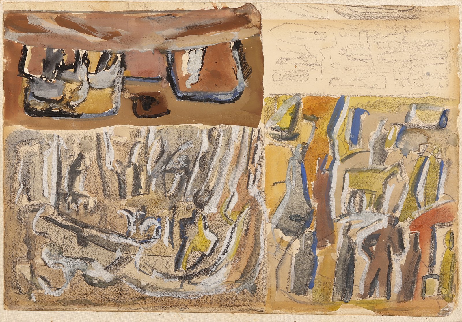 SIRONI MARIO (1885 - 1961) Composizione. 1955. Tecnica mista su carta applicata su tela . Cm 35,80 x 24,50. Opera archiviata dall’Associazione per il Patrocinio e la Promozione della Figura e dell’Opera di Mario Sironi, Milano (conferma telematica). Esposizioni: Mario Sironi 1885 – 1961, Mostra retrospettiva itinerante nel cinquantenario della morte, Bergamo, Padiglione Cultura - Bergamo Arte Fiera, dal 14 al 17 gennaio 2011, poi Bologna, Galleria d’Arte Cinquantasei, dal 23 gennaio al 24 marzo 2011, poi Genova, Padiglione Cultura – Genova Arte Fiera, dall’11 al 14 febbraio 2011, poi Arezzo, Padiglione Cultura – ArtExpo Arezzo, dal 17 al 21 marzo 2011, poi Sassari, Museo dell’Arte del Novecento e del Contemporaneo “Il Carmelo”, dal 25 giugno al 18 settembre 2011, poi Forlì, Padiglione Cultura – Contemporanea Forlì, dal 4 al 7 novembre 2011, poi Padova, Padiglione Cultura – Arte Padova, dal 10 al 14 novembre 2011, poi Bari, Padiglione Cultura – Expo Arte Bari, dal 18 al 20 maggio 2012, p.238. Databile 1955 circa. Cornice presente