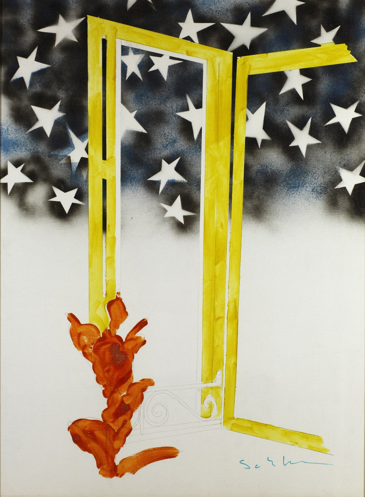 SCHIFANO MARIO (1934 - 1998) Senza titolo. Acrilico su tela. Cm 93,00 x 130,00. Seconda metà anni '70. Firma in basso a destra. Opera archiviata presso la Fondazione M.S. - Multistudio, Milano, come da documentazione fotografica allegata all'opera riportante il relativo numero d'inventario. Cornice presente
