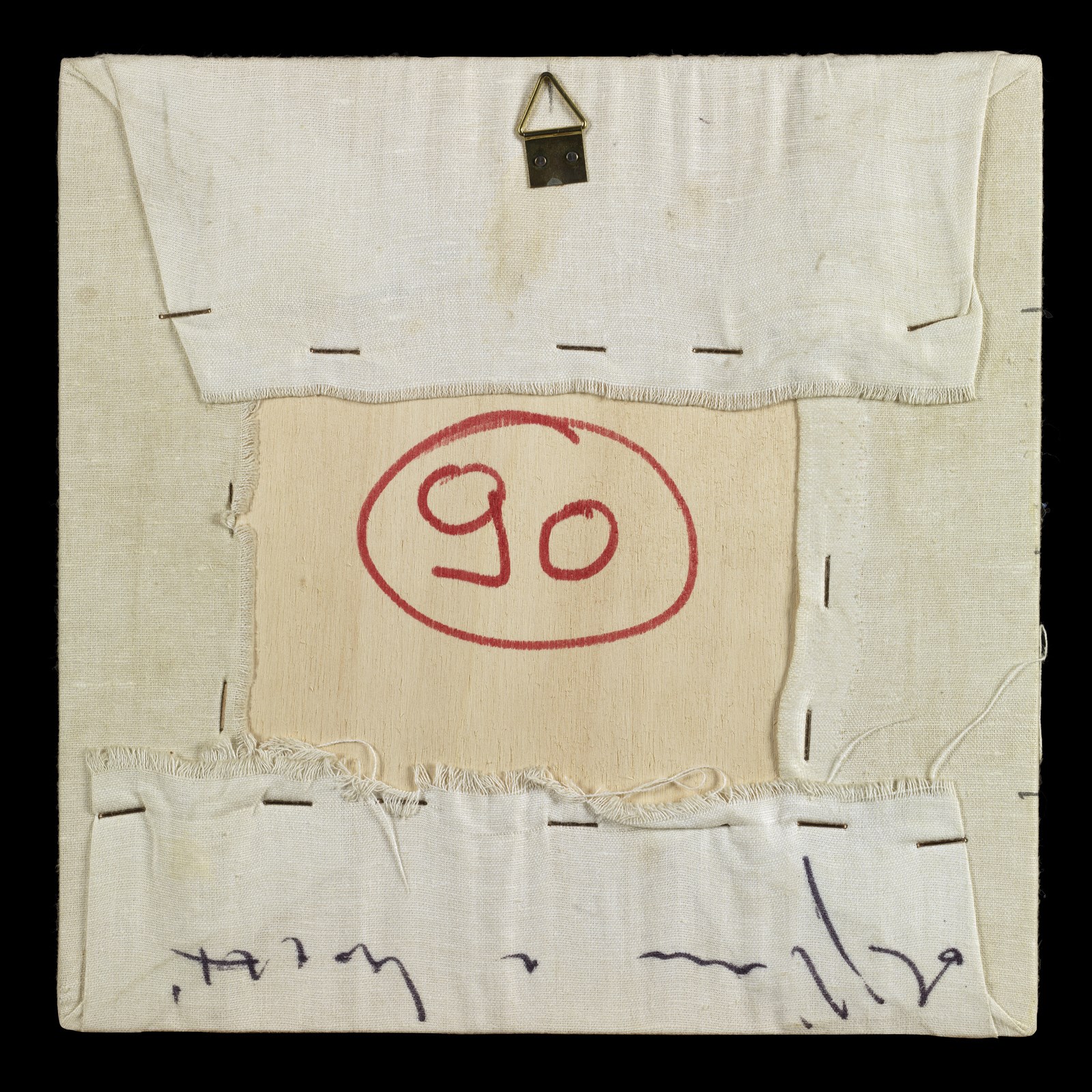 BOETTI ALIGHIERO (1940 - 1994) Divine astrazioni. 1990. Ricami su tessuto. Cm 23,60 x 23,50. Firma al retro. Opera archiviata presso l'Archivio Alighiero Boetti, Roma come da documentazione allegata all'opera riportante il relativo numero d'inventario.