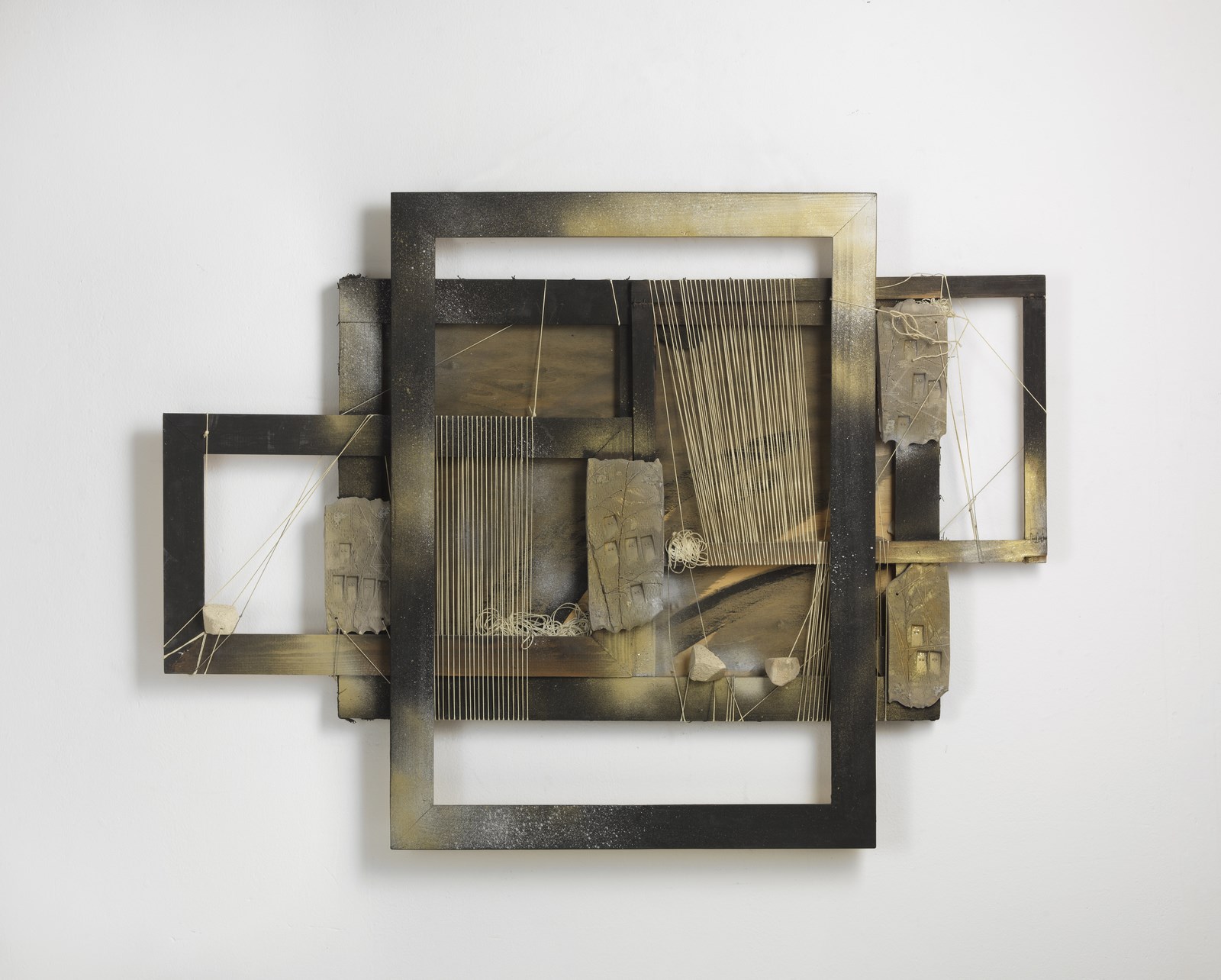 LAI MARIA (1919 - 2013) Telaio. 1998. Legno, spago e ceramica. Cm 107,00 x 79,00. Firma e anno al retro. Provenienza: collezione privata, Cagliari. Opera archiviata presso l'Archivio Maria Lai, Lanusei, come da documentazione fotografica allegata all'opera, riportante il relativo numero d'inventario.