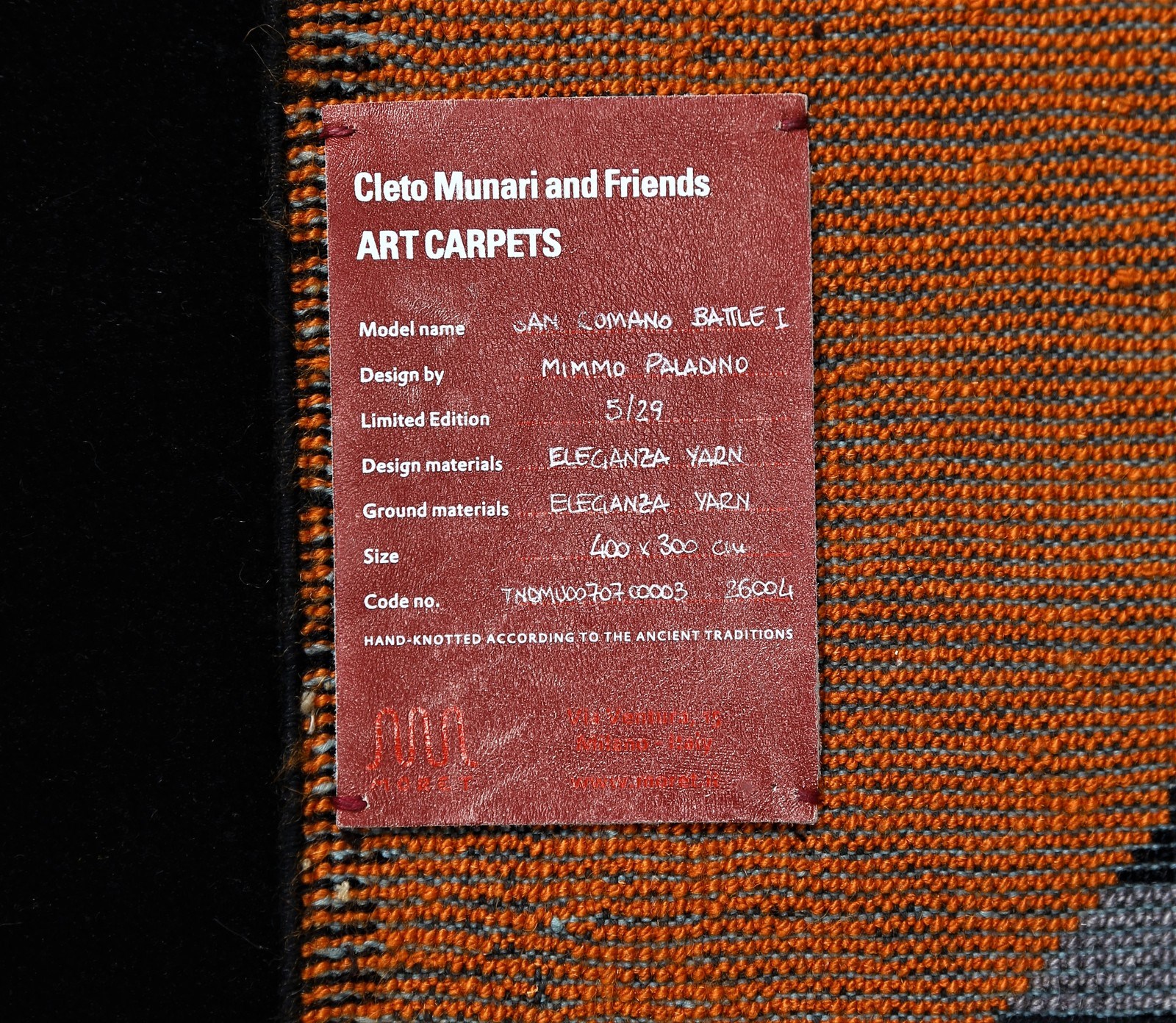 PALADINO MIMMO (n. 1948) San Romano Battle I. 2010. Arazzo. Cm 300,00 x 400,00. 5/29. Firma in basso al centro. Al retro cartiglio descrittivo Cleto Munari & Friends.