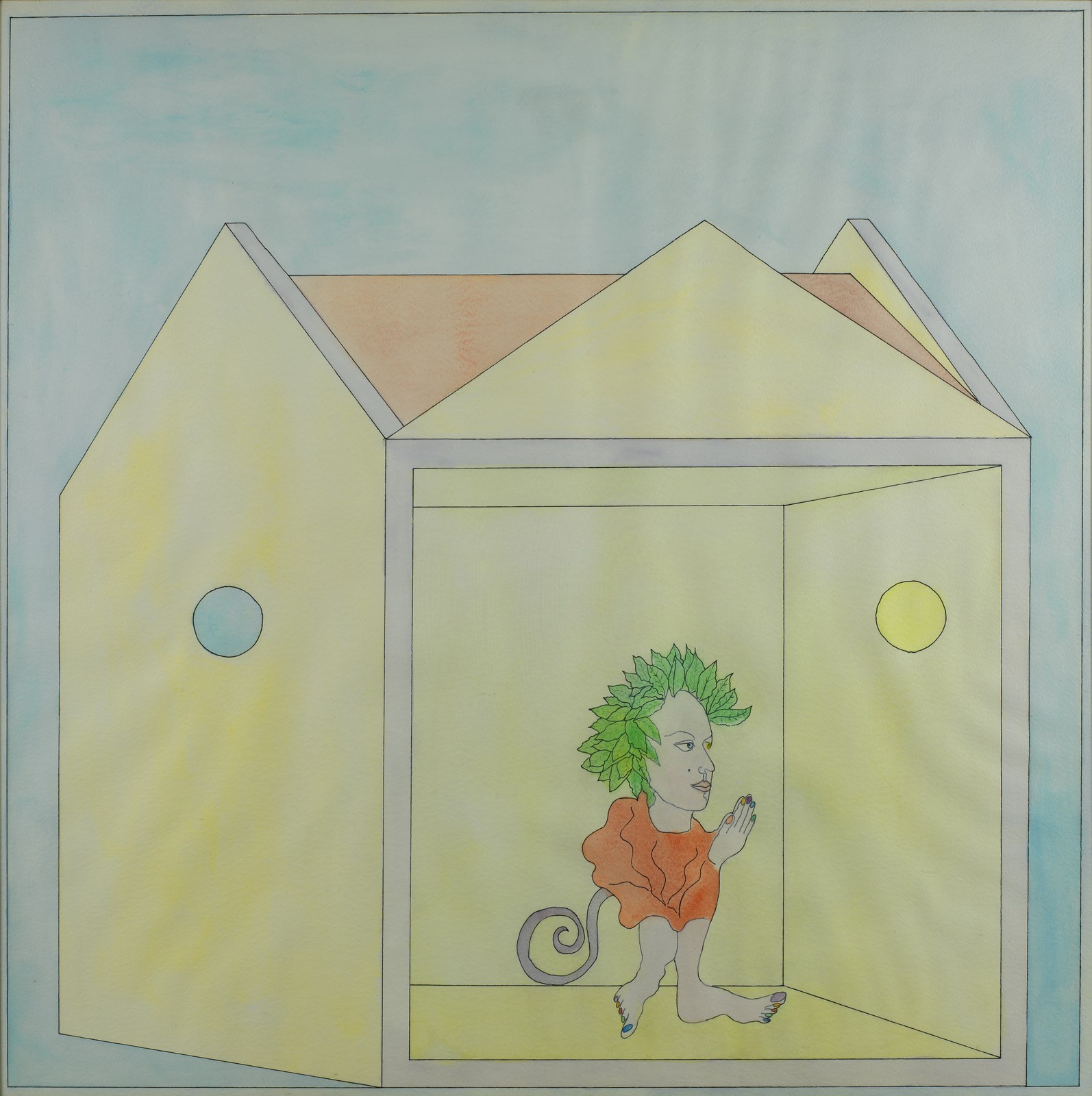 ONTANI LUIGI (n. 1943) Cella grillo poeta. Acquarello su carta. Cm 102,00 x 102,00. Anni'70. Firma al retro. Autentica dell'artista su fotografia. Mostre: Italian Wave, Holly Solomon Gallery, New York, 1983 a cura di Francesca Alinovi. Cornice presente