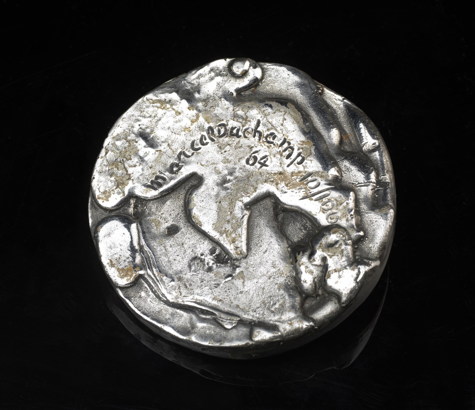DUCHAMP MARCEL (1887 - 1968) Bouche-Evier (Sink stopper). 1964. Acciaio inossidabile lucidato. Cm 6,50 x 6,50. 10/100. Tiratura, firma e anno incise al retro. Editore: International Collectors Society, New York. Esistono altri 100 esemplari in bronzo e 100 in argento sterling. Bibliografia: Schwarz 608.