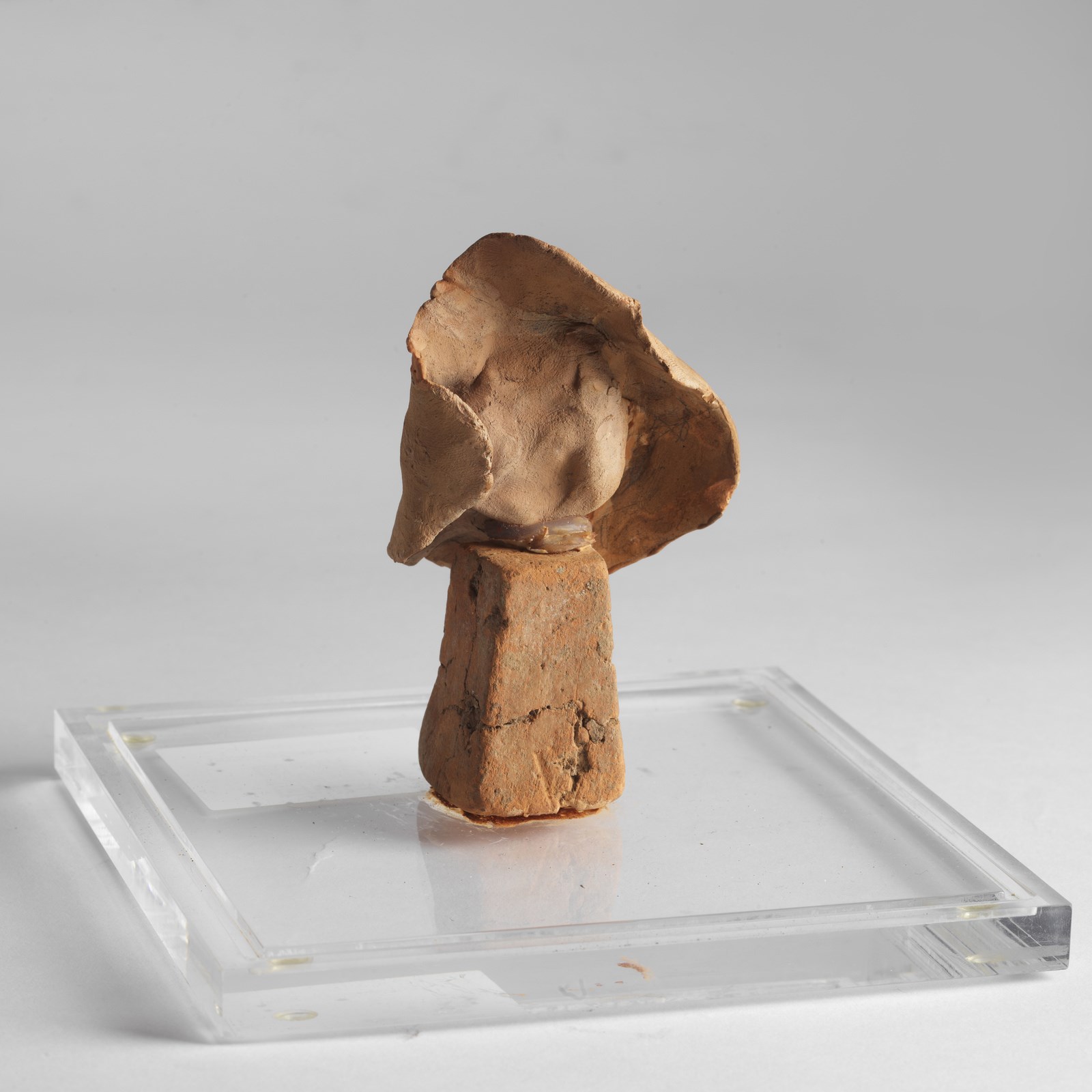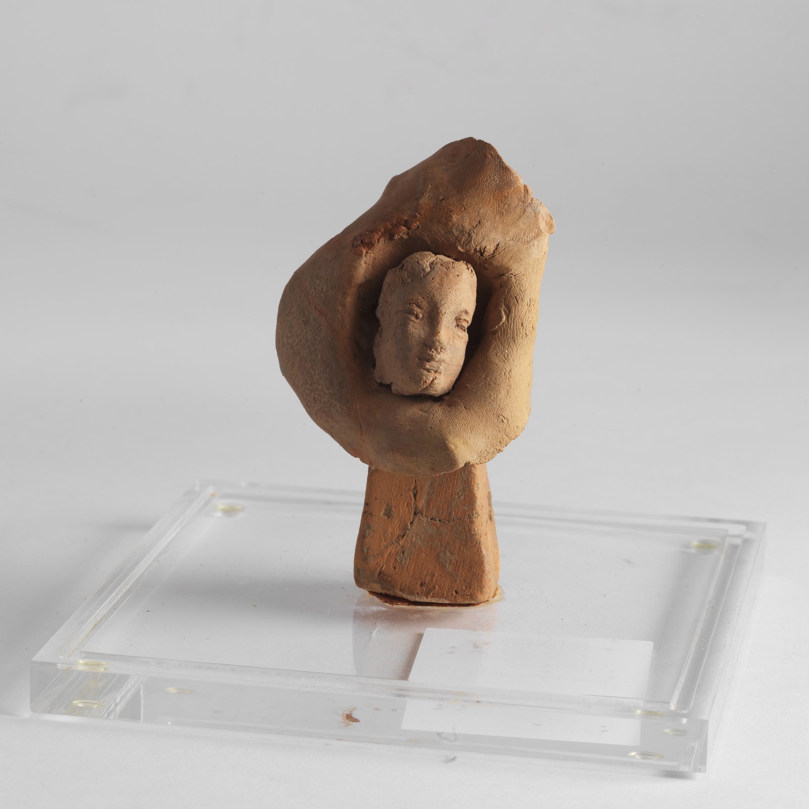 MELOTTI FAUSTO (1901 - 1986) Volto. 1950. Terracotta. Cm 6,50 x 8,00. Opera archiviata presso Archivio Fausto Melotti come da documentazione fotografica allegata all'opera riportante il relativo numero d'inventario la firma di Marta Melotti. Entro teca di plexiglass.