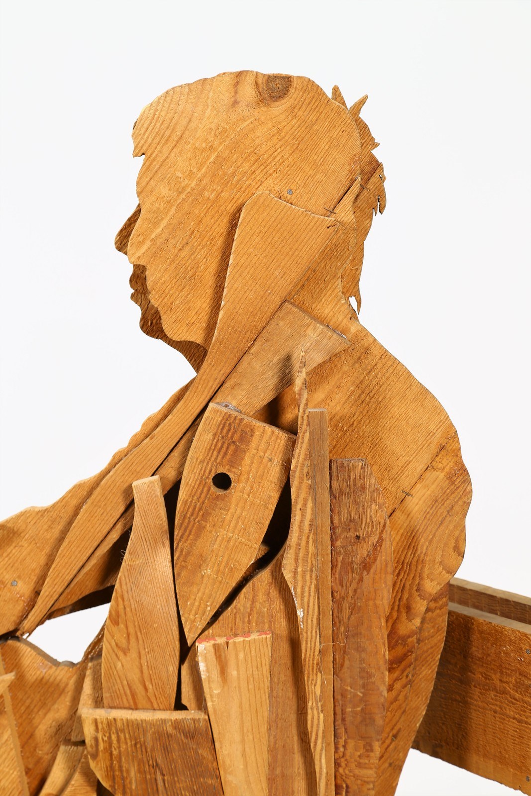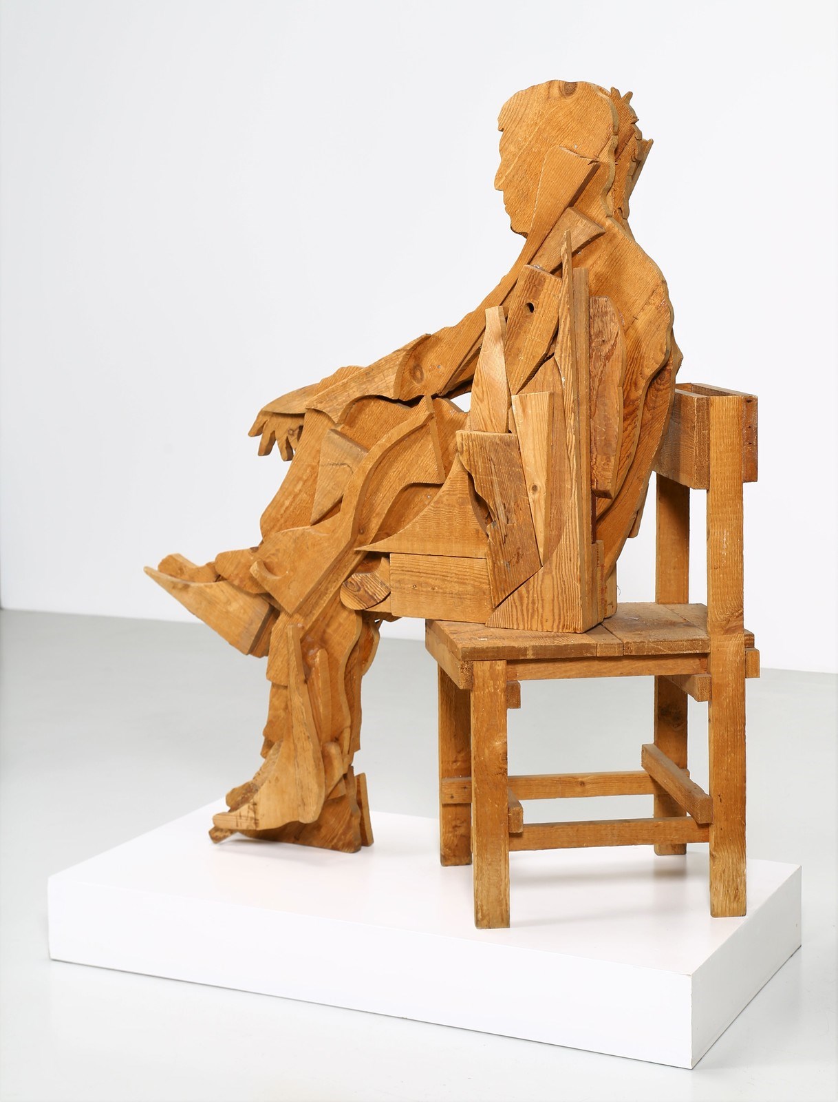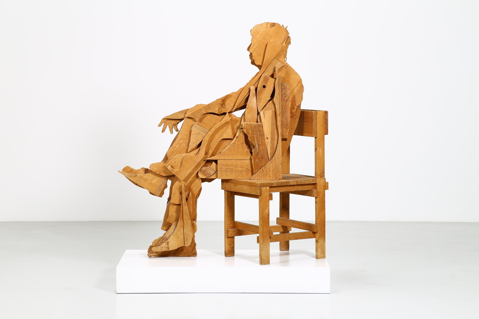 CEROLI MARIO (n. 1938) L'anonimo seduto. 1980. Legno. Cm 130,00 x 145,00 x 60,00. Autentica dell'artista su fotografia. Provenienza: Casa D'Aste Farsetti, Prato, 27 novembre 1993, lotto n.65; Galleria Dante Vecchiato, Padova; Cllezione privata, Padova. Mostre: "La grande svolta - Anni 60. Viaggio negli anni Sessanta in Italia", Palazzo della Ragione, Padova, 7 giugno - 19 ottobre 2003.