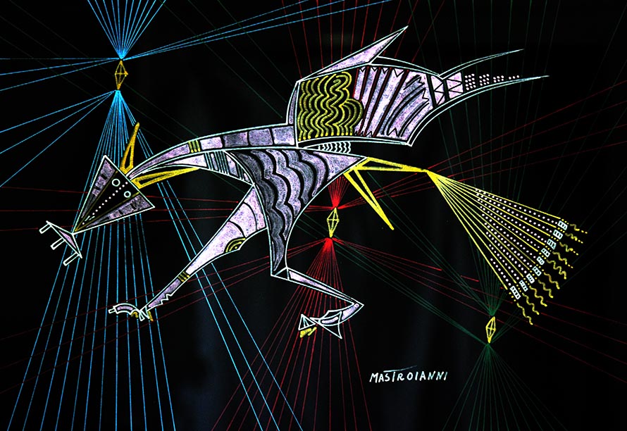 Umberto Mastroianni Acrilico su cartone 35x50 Caronte futurista 1970 Autentica dell'artista su foto