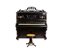 PIANOFORTE VERTICALE ROESELER Germania inizio del XX Sec. In legno ebanizzato, tasti in avorio e portacandele in bronzo dorato, completo di sgabello in legno con seduta in paglia di Vienna Dim. 125x150x65 cm.