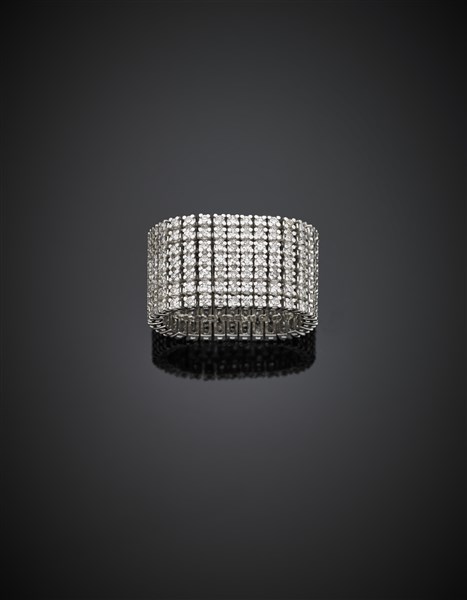Anello eternity morbido in oro bianco e diamanti per complessivi ct. 2 circa, g 12,97 misura 14/54.