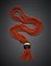 Collana lunga a tre fili in corallo arancione-rossastro rifinita con boule in l