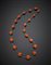 Collana a scalare in boules ovoidali di corallo arancione da mm 9.50 a mm 17.50 distanziate da catena in oro giallo, g 87,46, lungh. cm 67 circa.