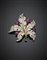Broche in oro bianco e giallo a guisa di foglia rifinita con diamanti per compl