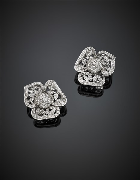 Lot 159 | Orecchini a lobo in oro bianco e diamanti per complessivi ct. 2,50 circa a form