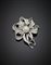 Spilla a fiore e volute in oro bianco e diamanti per complessivi ct. 10,00 circ