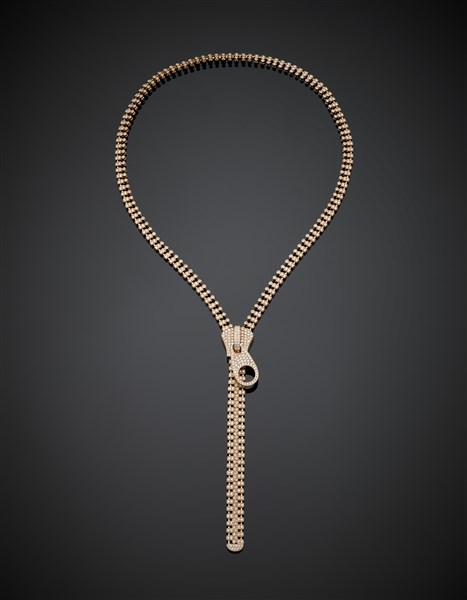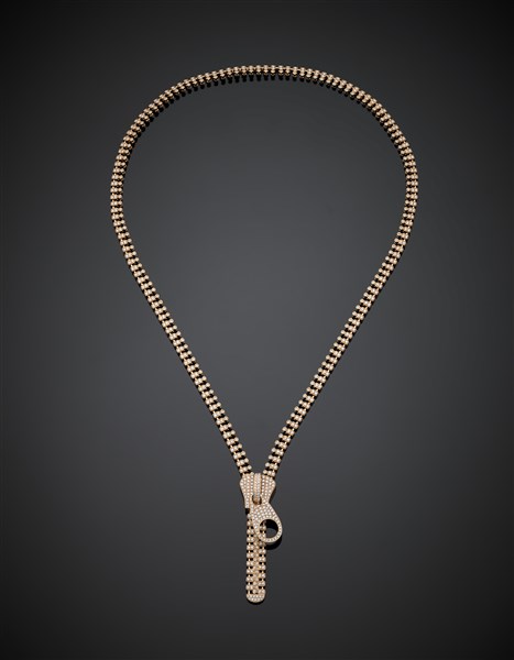 Lot 424 | Collier in oro rosa e diamanti a guisa di zip per complessivi ct. 2,16 circa, g
