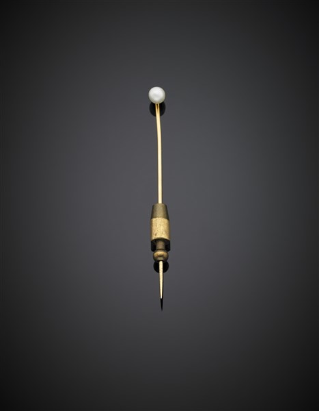 Lot 449 | Spillone in oro giallo con perla, fermezza in metallo, netti g 1,23, lungh. cm