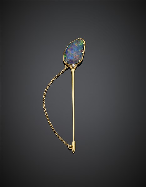 Lot 496 | Spillone in oro giallo con doppietta di opale sintetico e piccolo diamante roto