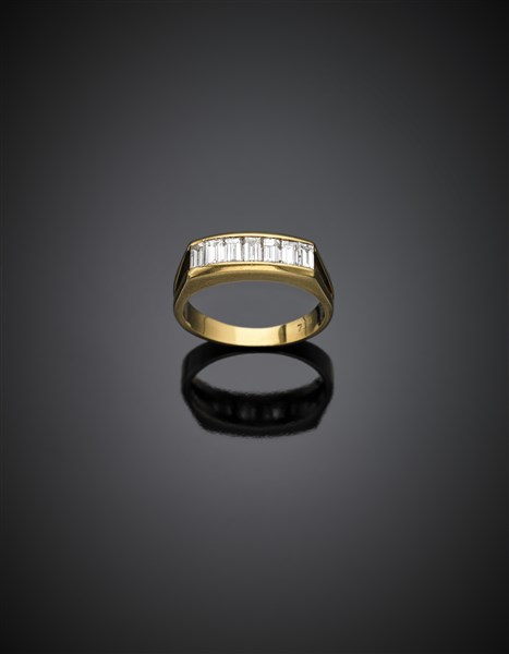 Yellow gold baguette diamond ring, in all ct. 1.10 circa, g 4.81 size 14/54.