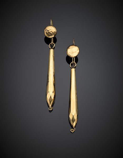 Lot 635 | Orecchini pendenti in oro giallo, pendenti removibili g 15,19, lungh. cm 13,50