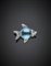 White gold diamond and cabochon ct. 22 circa blue topaz globe fish pendant/brooch, diamonds in all ct. 0.50 circa, g 14.04, length cm 3.50, width cm 3 circa. Signed Femini, 2881 AL.