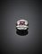 Round and calibré diamond white gold ring with a central red composite stone, g 9.11 size 10/50.