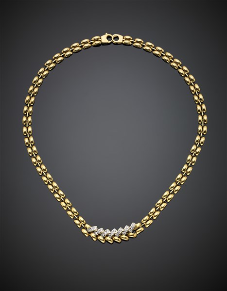 RONCO Collier in oro giallo con centrale rifinito con pietre incolori, g 40,22,