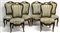 Gruppo di sei sedie con schienali sagomati decorati da applicazioni in metallo e medaglioni in porcellana policroma dipinta a fiori (gravi difetti)