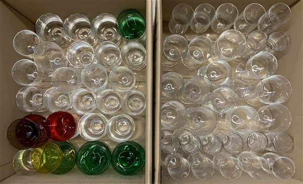 Due cartoni contenenti numerosi bicchieri di differenti fatture (difetti)