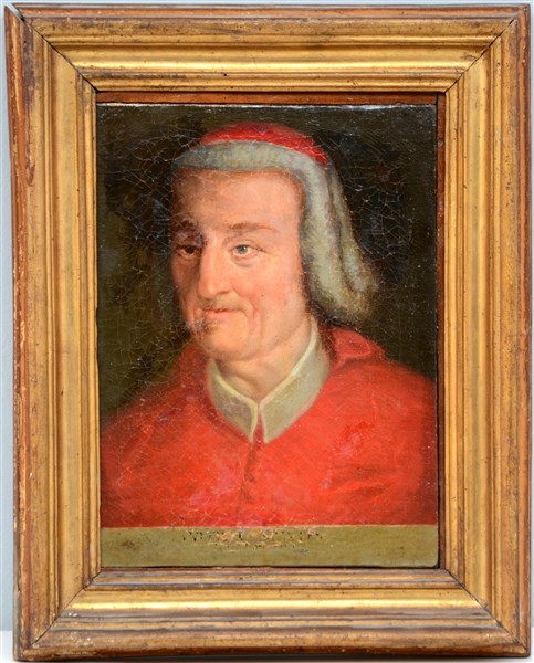 Ignoto del secolo XIX "Ritratto di cardinale" Olio su tela (cm 30x22,5) Iscritt