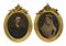 Ignoto del secolo XX "Ritratto virile e ritratto femminile" coppia di olii su tela ovale (cm 60x50) in cornici dell'epoca in legno intagliato e dorato a nastro, fiori e foglie (difetti)